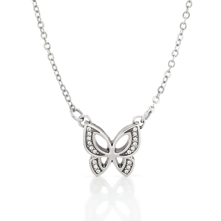 Inspired by the trail of a shooting star, the Starry Night Butterfly Necklace evokes wonderment. With a distinctly modern look, the butterfly rests between two chains. Let its brilliance delight you!