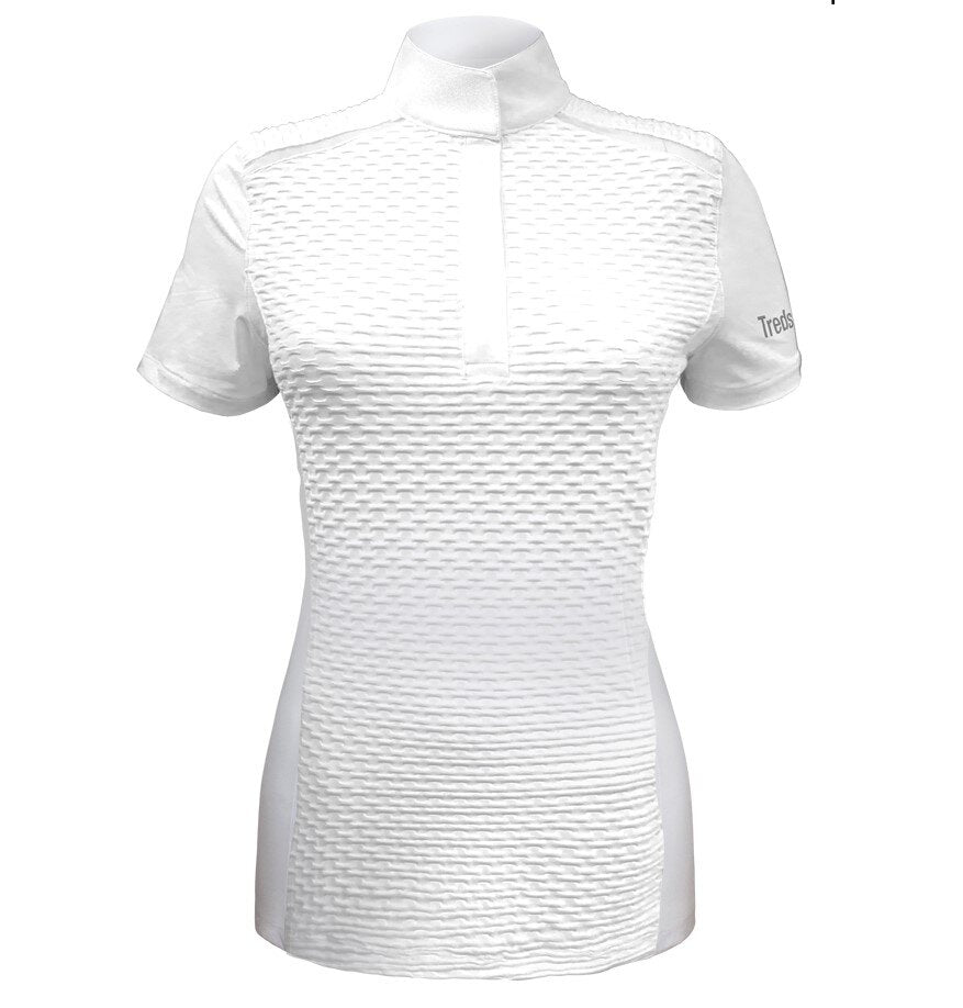 The Tredstep™ Solo Pearl Show Shirt adds contemporary twists to classic show styling with textural front, back and shoulder panels and mesh inserts along raglan shoulder “seams.” Lightweight stretch panels at the sides and sleeves ensure your freedom of movement. A ventilation grommet at the nape lets heat escape. Stand collar and covered placket for a polished presentation.